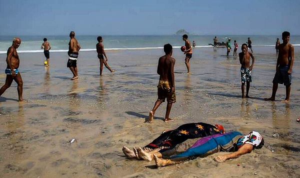 O racha ao lado das vítimas do desabamento de parte de uma ciclovia, no Rio.